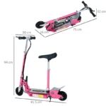 Home Leisure 12V Battery 120W Teens Foldable Electric Scooter Adjustable Ride Over 7 years old -Pink