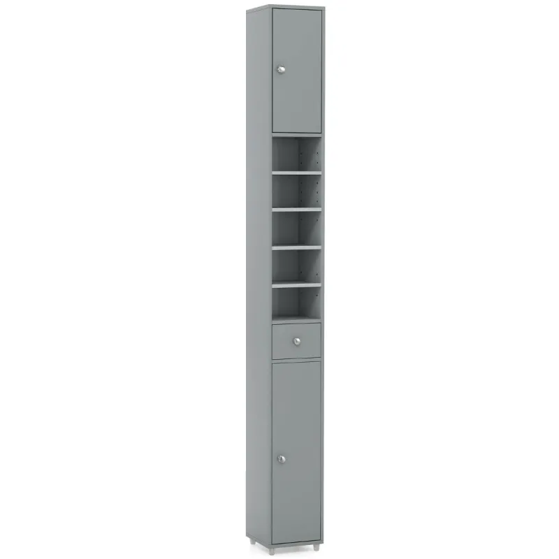 Home Floor Cabinets 180CM Tall Freestanding Bathroom Cabinet with 2 Doors and 1 Drawer-Grey