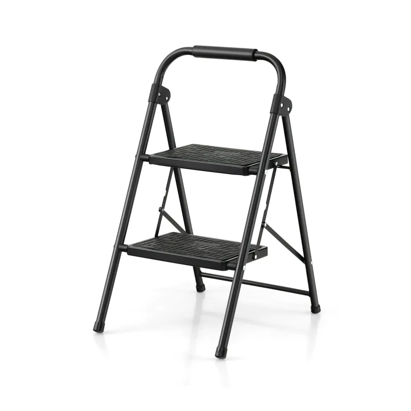 2 Step Folding Ladder with Safe Lock and Hand Grip-Black