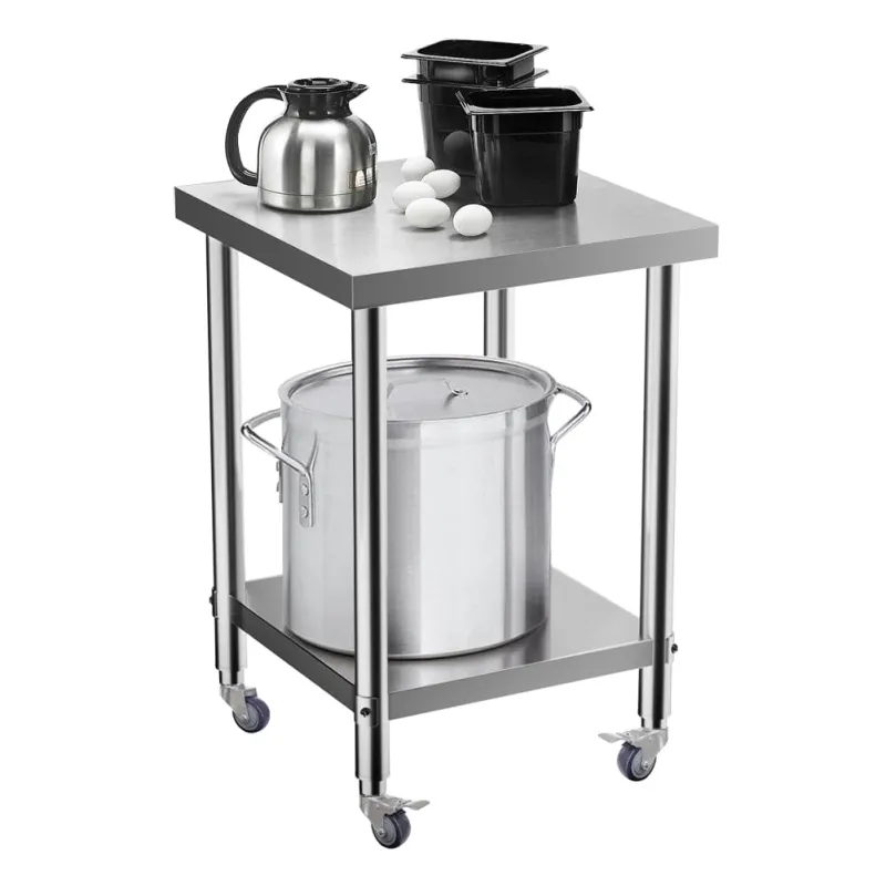 Home Commercial Work Tables 2 Tier Commercial Kitchen Prep and Work Stainless Steel Table