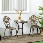Classic elegance, with a beautiful bronzed finish – this Outsunny three-piece bistro set. Comes with two chairs and a matching table; all are cut out in a floral design for a pretty and decadent look. Each piece is made from cast aluminium – strong and supportive and suitable for outdoor use. The table features a middle 48mm diameter hole to secure a parasol in place to keep you safely shaded.