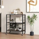 3-Tier Foldable Shelving Unit with Detachable Wheels Height-Adjustable Shelves-Black