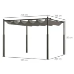 Home other 3 x 3(m) Metal Pergola with Retractable Roof and Magnetic Fixture, Outdoor Gazebo Garden Pergola Kit Sun Shade Canopy, UPF30+, 80mm Metal Column, Grey