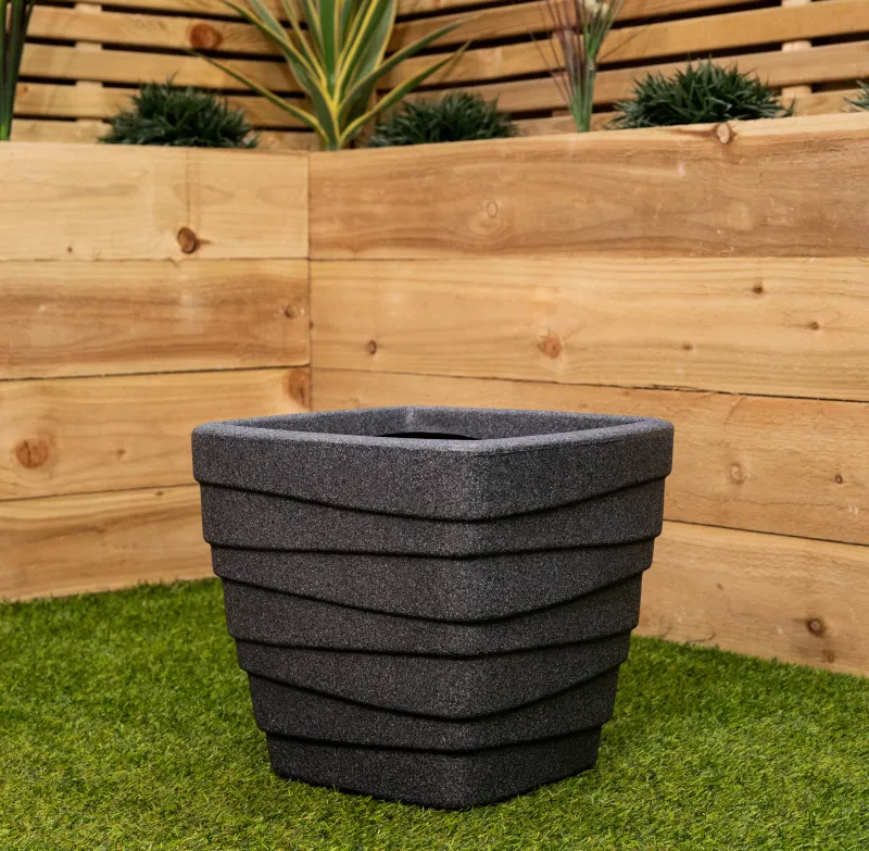 Decorate your indoor or outdoor space this year with this attractive trojan style plant pot. Ideal for creating a focal point within your garden, patio or indoor space. This dark Grey planter offers a modern and contemporary look allowing this to blend in with any existing furniture and decor. Made from plastic, the lightweight design means it can be easily maneuvered into the perfect position. This modern planter features a square design with a natural granite effect finish and is also frost resistant making this perfect for year round use. Product Dimensions Height: 31cm and 33.5cm Wide
