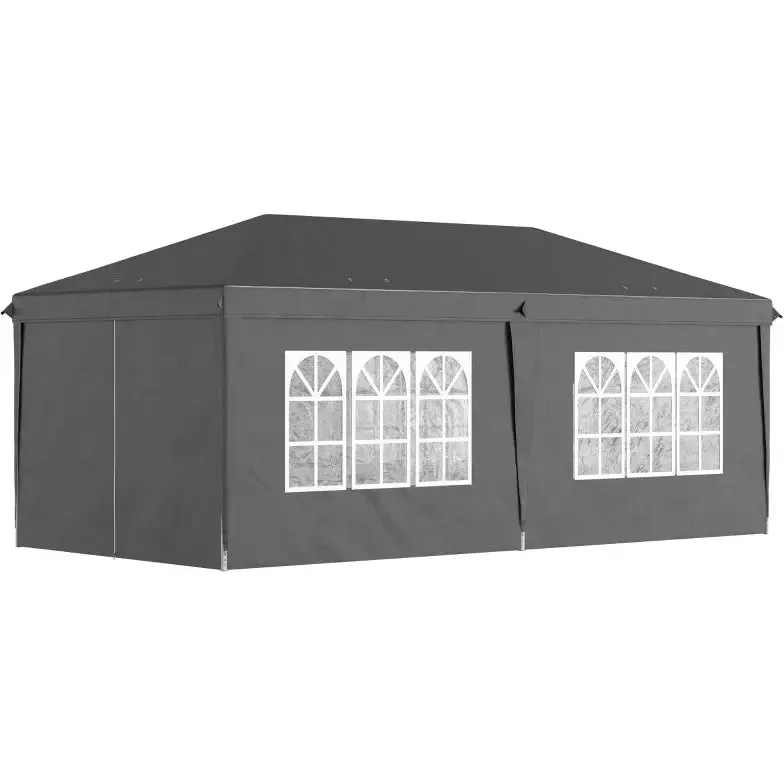Hosting an outdoor event has never been easier with this Outsunny pop up gazebo. Its easy-to-use design means you can have it up in minutes. The sidewalls with windows offer excellent viewing and ventilation. Its adjustable steel frame gives you a customised shelter while its silver-coloured lining protects against direct sunlight. With the included accessories, setup is simple and quick. Perfect for barbecues, parties, and more, this marquee gazebo is a must-have for anyone looking for a reliable and spacious outdoor shelter.
