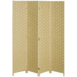 Keep it classic in the home with this room divider screen. A frame formed from wood, this is a strong piece; where the four panels connected with hinges allow you to shape this divider to a position you want – keep covered via one, or all sides. The woven wicker effect brings a stylish touch to your bedroom, living room and beyond. Use it to get dressed with protection or separate an area in a beautiful way. Great for dividing your studio flat!