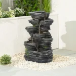 Transform your outdoor space into a sanctuary of positive energy and tranquility with our Garden Cascading Water Fountain. In Eastern Feng Shui, flowing water symbolizes abundance and prosperity, inviting positive energy and wealth into your life. Additionally, you can experience the soothing sound of a babbling brook, which allows you to immerse in the serenity of nature to uplift your spirits. With three warm white solar-powered lights, it enhances the enchanting allure of your outdoor oasis even when it gets dark.