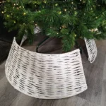 Make a statement this Christmas this year with this deluxe Samuel Alexander rattan effect Christmas tree skirt in white wash. This large stylish tree skirt sits around the base of the tree and will compliment the appearance and help artificial trees to look more realistic by hiding the metal or plastic stands. Tree skirts primary function in the past would have been to protect the floor from wax candle drippings and fallen needles. Made from a metal frame and split willow body, these tree skirts come in 3 section pieces which clip together to create the full collar and easily dismantles which allows for easy storage until next year. Please measure your Christmas tree stand for sizing. Product External Dimensions Large Skirt Top Diameter: 48cm Bottom Diameter: 70cm Height: 25cm