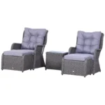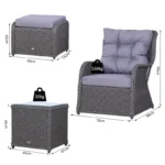 Home Outdoor Living 5-Piece Deluxe Garden Rattan Furniture Sofa Chair & Stool Table Set Patio Wicker Weave Furniture Set Aluminium Frame Fully-assembly – Grey