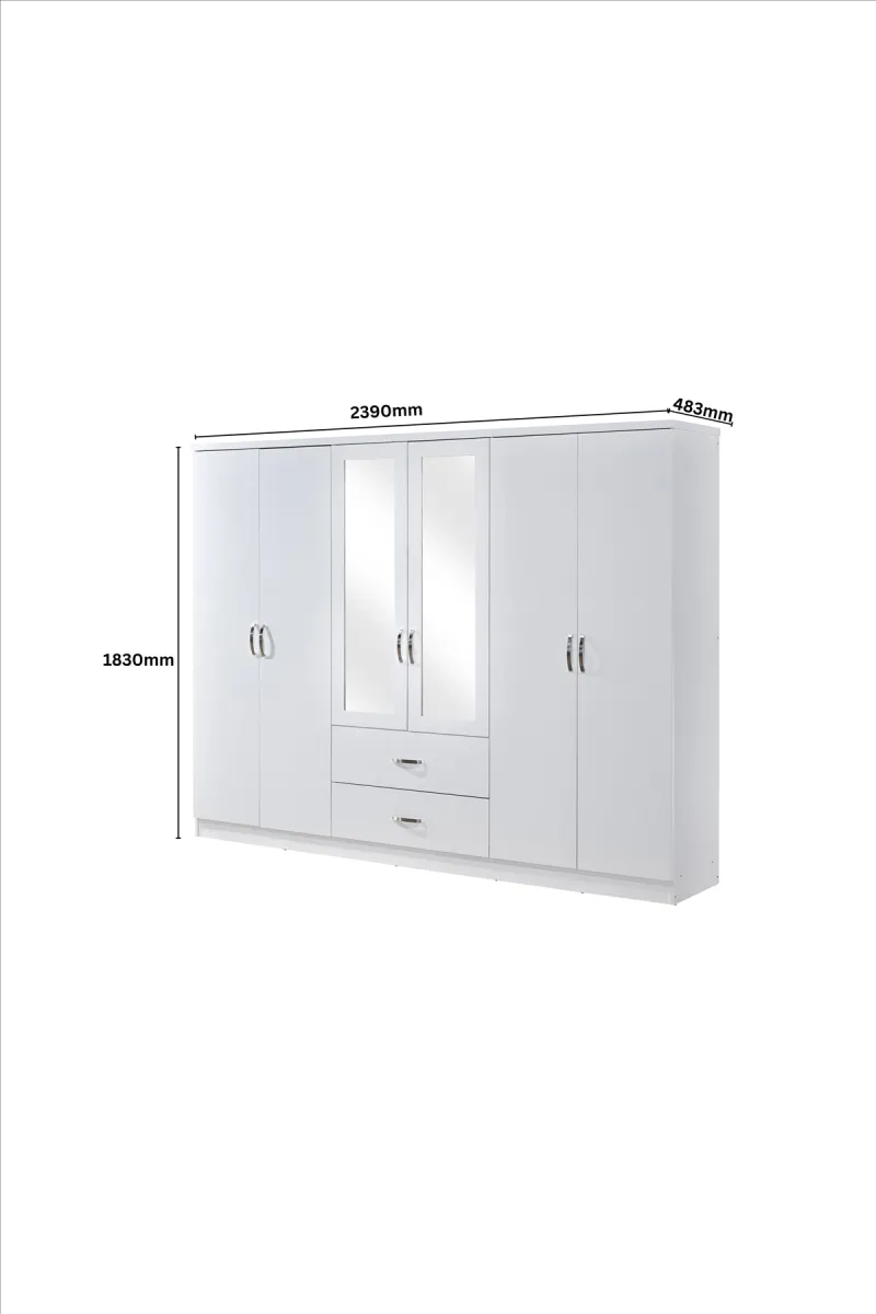 6 Door Wardrobe – White (Chrome Handles)