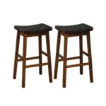 78cm Saddle Barstools with Woven Curved Seat for Kitchen-Black & Brown
