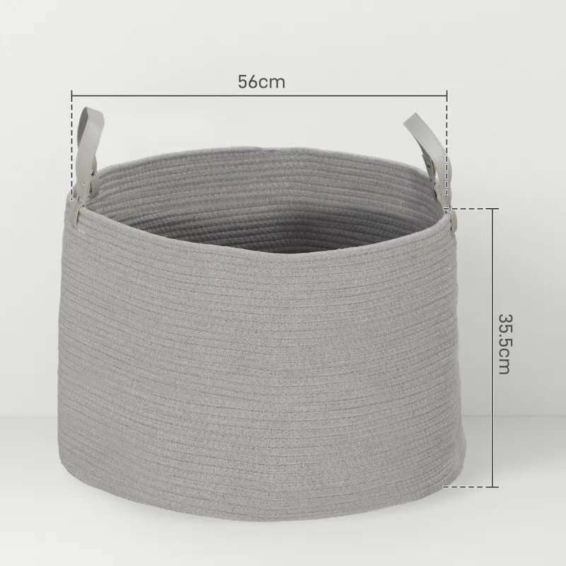 88L Cotton Rope Laundry Basket With Sturdy Handles For Clothes Storage, Grey