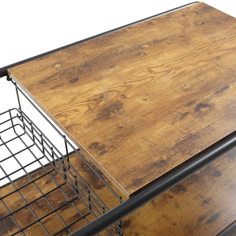 90cm W Industrial Wooden Coffee Table with Wire Basket Storage Top