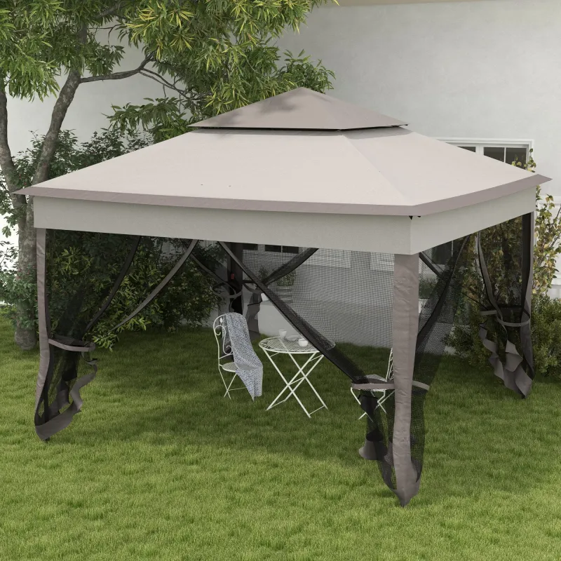 Outsunny 3.25 x 3.25m Pop Up Gazebo, Double-roof Garden Tent with Netting and Carry Bag, Party Event Shelter for Outdoor Patio, Brown and Grey
