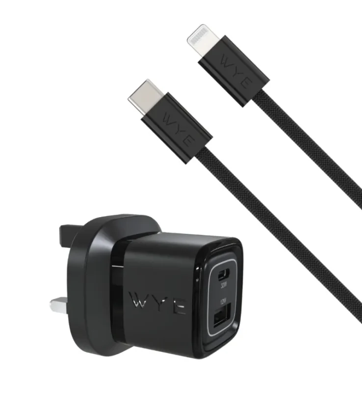 WYEFLUX 32W Dual Port USB-C & USB-A Charging Kit With USB-C to 8-Pin Cable (Gan III)