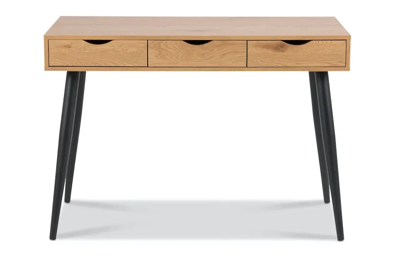 Bea Office Desk | 3 Drawers | Oak | Black Legs
