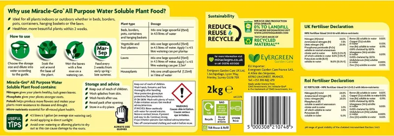 Miracle-Gro All Purpose Water Soluble Plant Food 2kg Tub