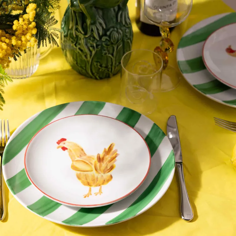 The Platera Green Stripe Porcelain Dinner Plate, 27.5cm