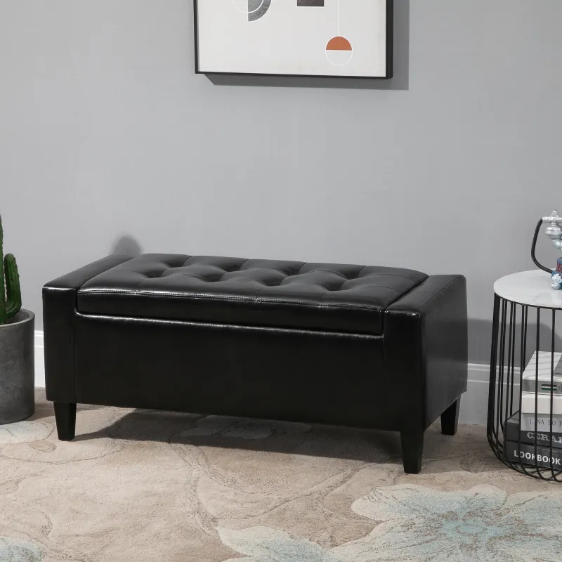 Homcom PU Leather Storage Ottoman Bench Storage Chest Tufted Ottoman Cube w/ Flipping Top 92L x 40W x 40H cm Black