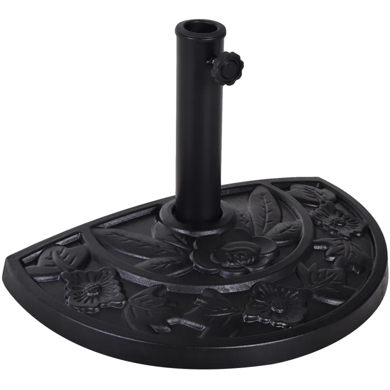 Outsunny 9kg Resin Parasol Base, Half Round Umbrella Stand with Floral Design for Garden, Outdoor, Suitable Umbrella Rod: 3.8cm, 4.8cm, Black