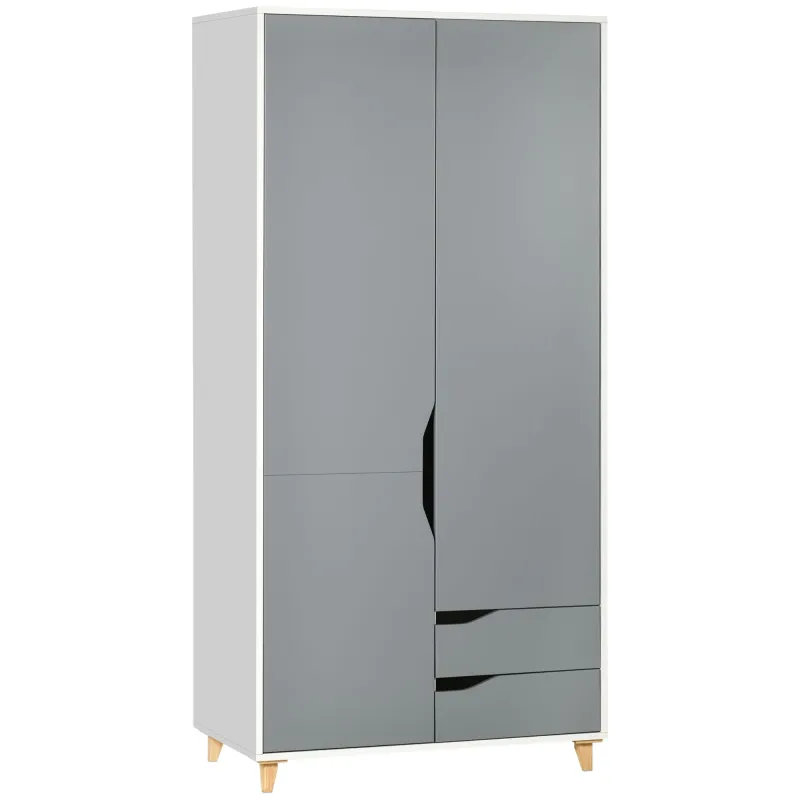 HOMCOM 2 Door Wardrobe with Drawers, Hanging Rail, Shelves for Bedroom, Grey