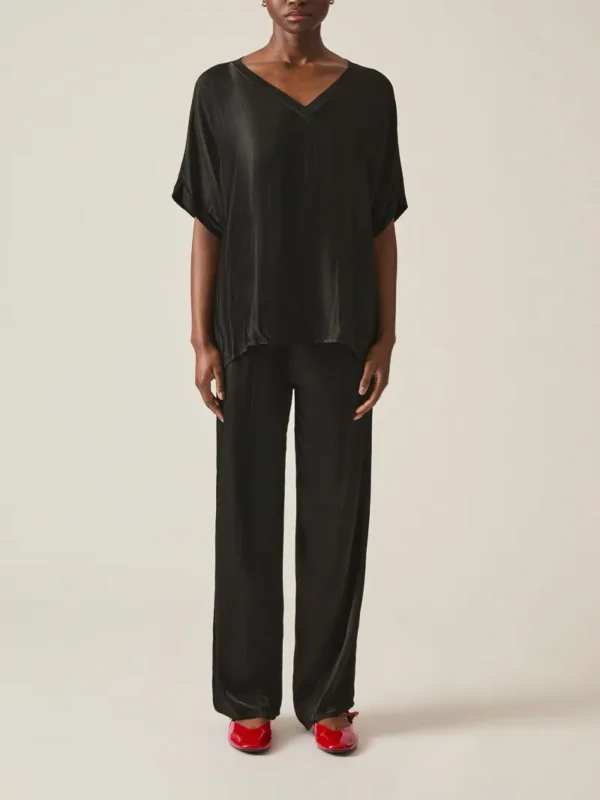 Satin Short Sleeve Top