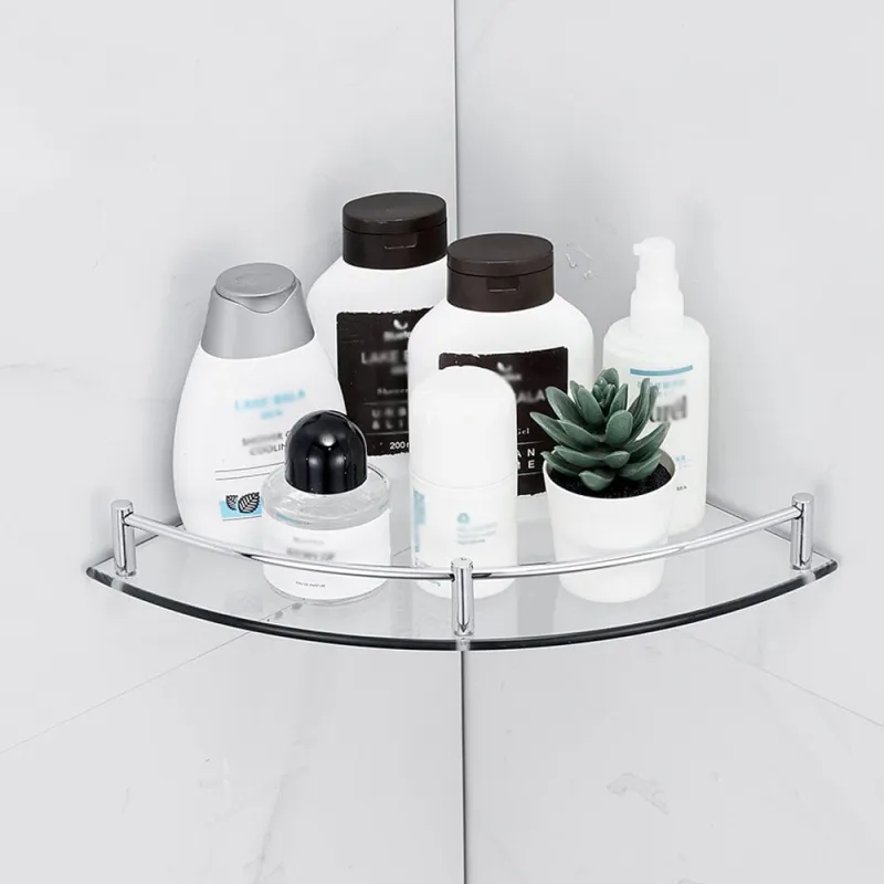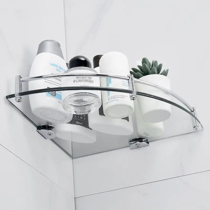 Set of 2 Bathroom Wall Mounted Glass Corner Storage Shower Shelf
