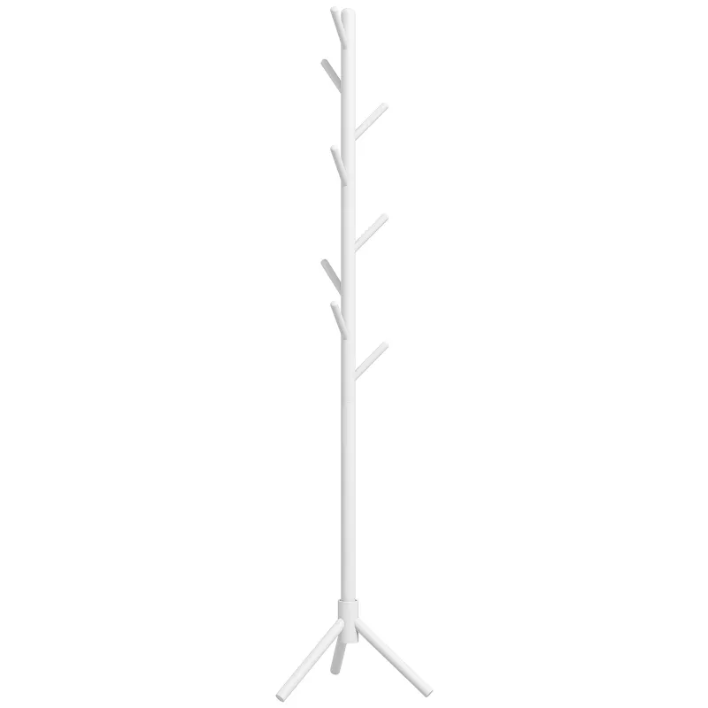 Wooden Coat Stand with Eight Hooks Ideal for Hallways and Entryways, White