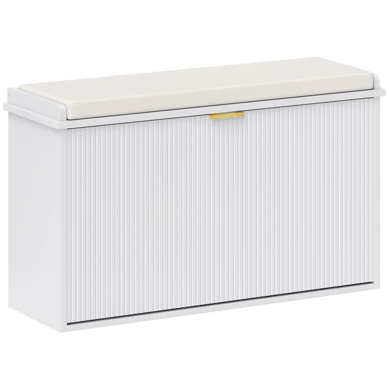 White Shoe Storage Bench with Cushioned Seat and Eight Compartments by HOMCOM
