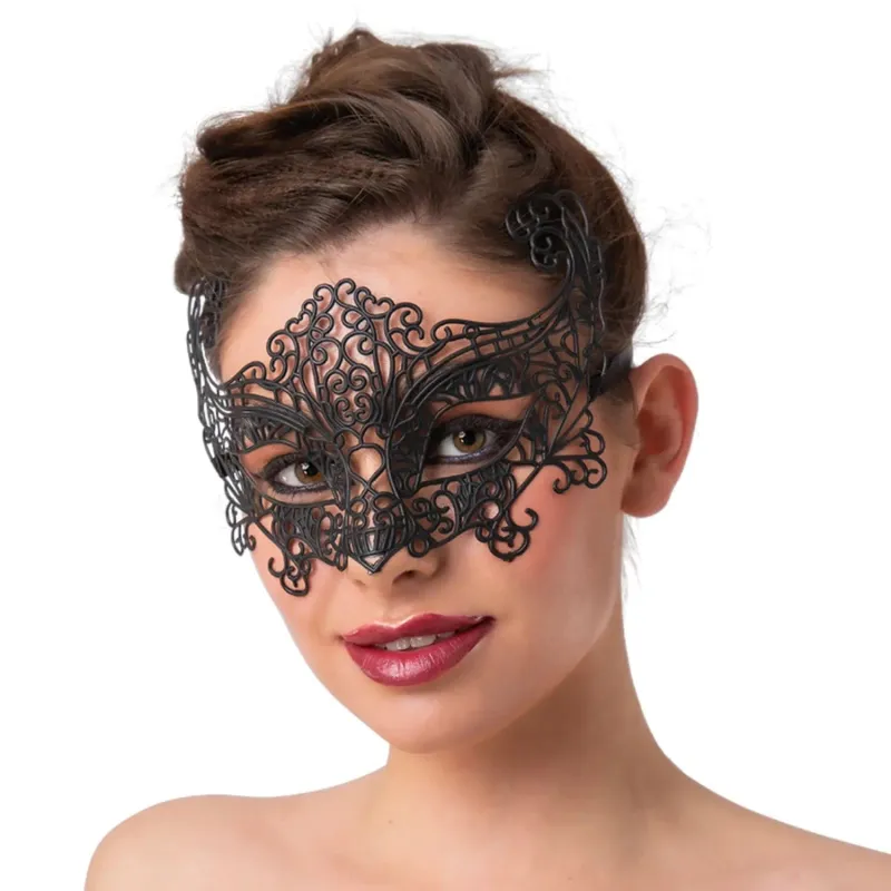 Filigree Eye Mask Black Lace Effect Masquerade Ball Face Cover