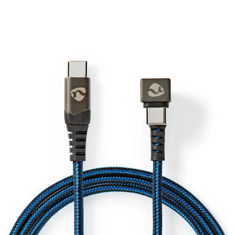 Nedis USB Cable | USB 2.0 | USB-C™ Male | USB-C™ Male | 480 Mbps | Gold Plated | 1.00 m | Round | Braided / Nylon | Black / Blue | Cover Window Box