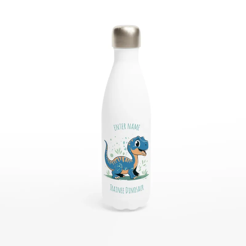 Personalisable White 17oz Stainless Steel Water Bottle – Brontosaurus Trainee