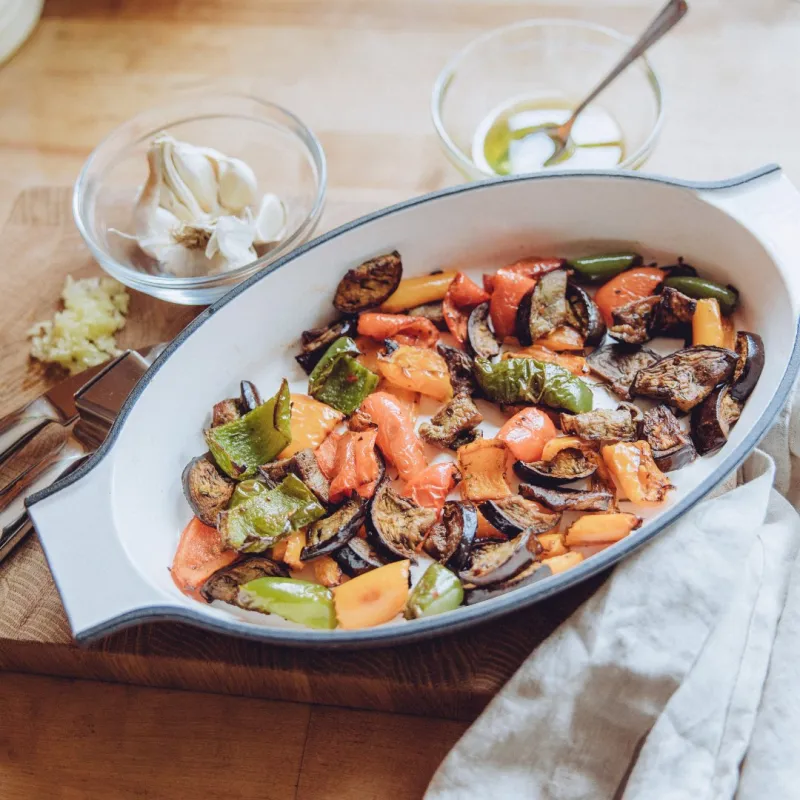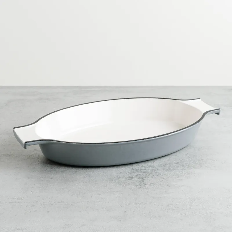 Grey & White Oval Cast Iron Enamel Gratin Dish