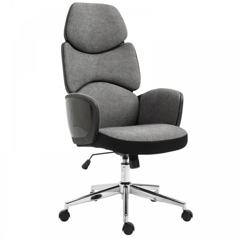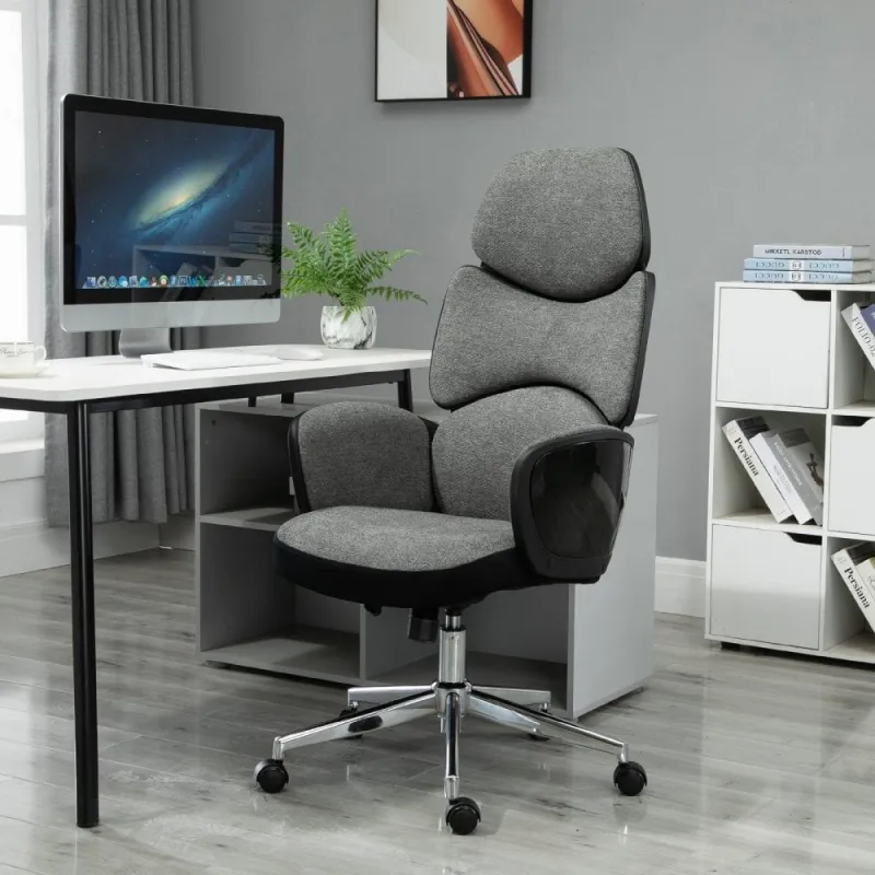 Vinsetto Padded Linen Ergonomic Home Office Chair w/ Wheels Grey