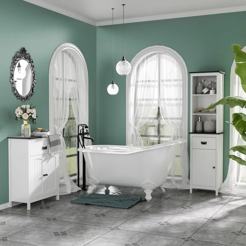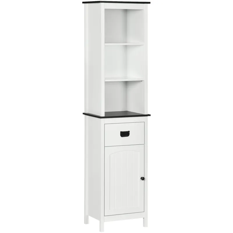 White Freestanding Tall Bathroom Cabinet With Drawer & Shelf