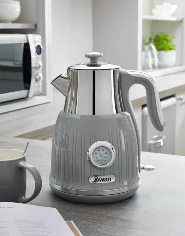 Swan Retro Grey 1.5L 3KW Dial Kettle, 4 Slice Toaster, 800W 20L Microwave & Canisters Kitchen Set of 6