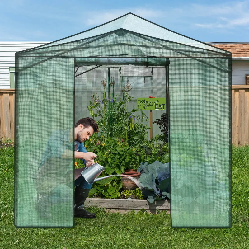 364 x 243 cm Folding Pop-up Greenhouse Walk-in with Zippered Doors-Green