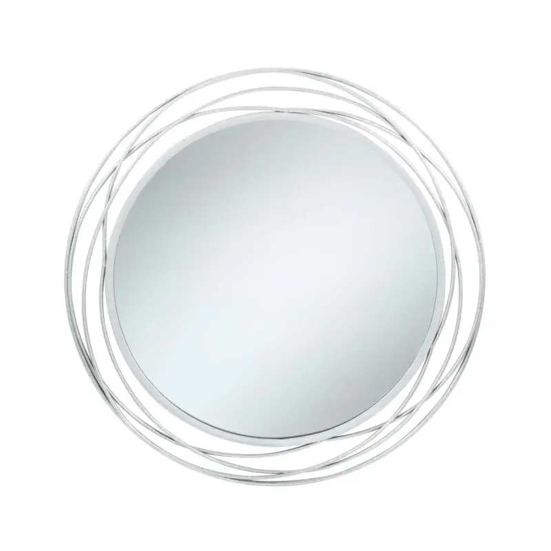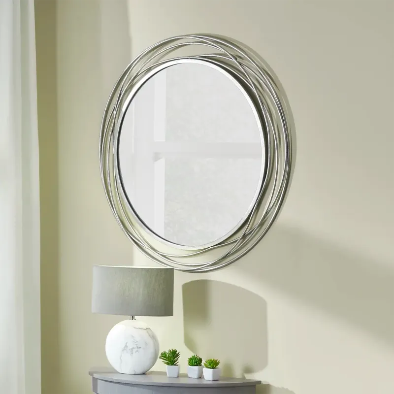 Large Round Antique Silver Metal Swirl Wall Mirror 90x90x3cm