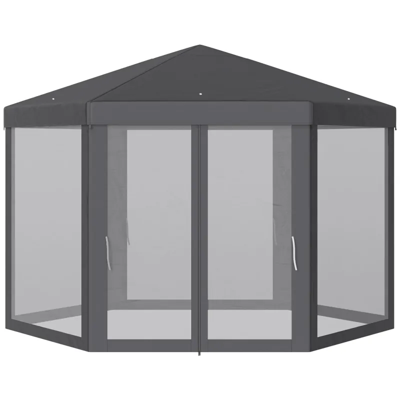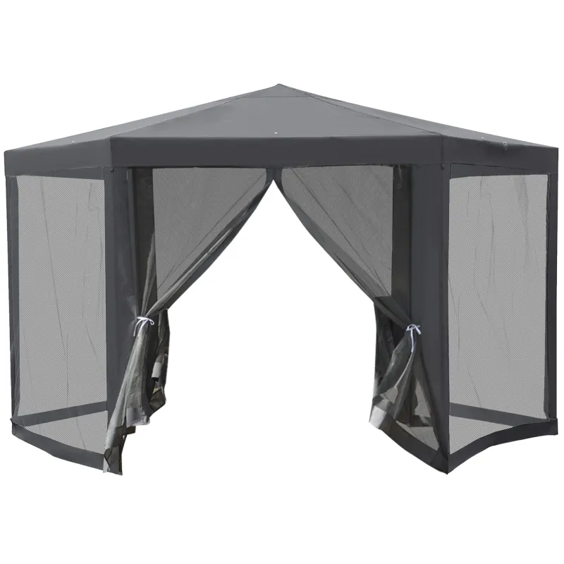 Outsunny Garden Hexagonal Gazebo Patio Outdoor Canopy Patio Party Tent Grey