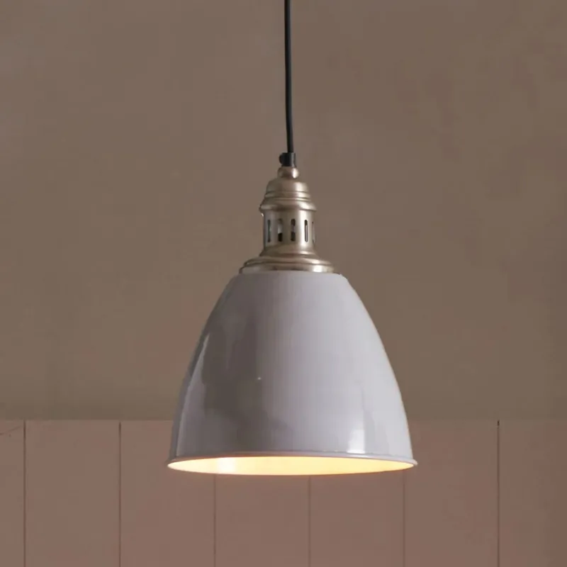 Grey Metal Café Dome Pendant Light Shade with Industrial Style – Ceiling Hanging Lampshade 21x26cm