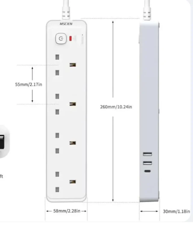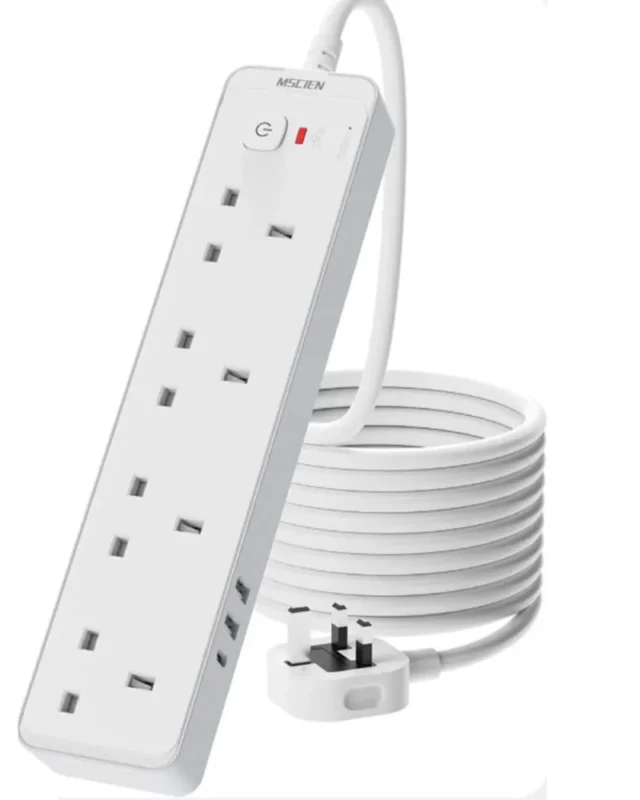 Mscien 5M Extension Lead with 3 USB Slots(3.4A, 1 USB C, 2 USB A), 4 Way
