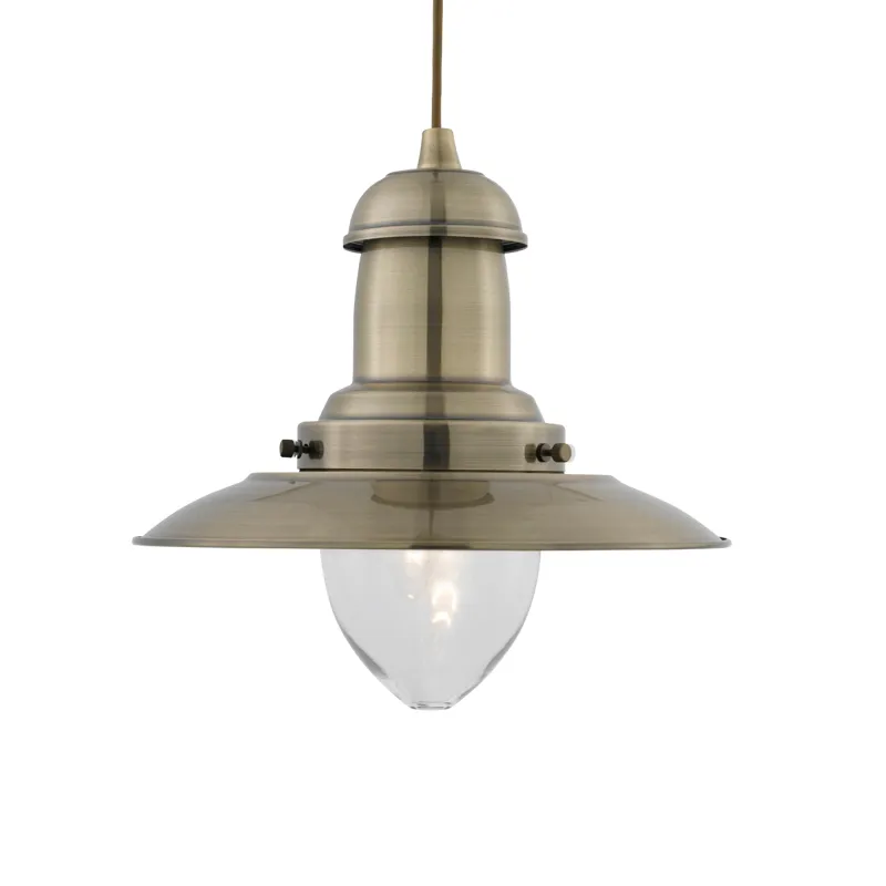 Searchlight 4301AB Fisherman Pendant – Antique Brass Metal & Glass