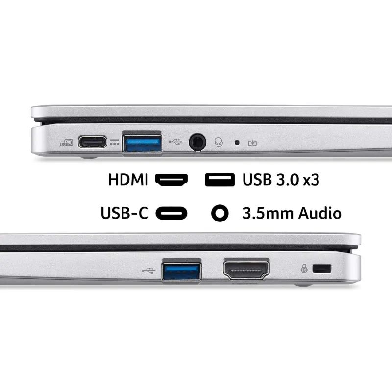 The Acer Chromebook 311 is here to keep you productive and entertained wherever you are. Its 11″ HD screen provides great colours and wide viewing angles. The Intel® N100 processor is just right for everyday browsing, emailing and social networking. And at only 1.2 kg, it won’t weigh you down. ChromeOS is easy and safe to use and can run all your favourite apps. With WiFi 6E you can have a super-fast and reliable internet connection. It can run for up to 13 hours on a single charge, so you can leave the charging brick at home. You’ll have plenty of ways to hook up accessories – you’ve got two USB-A ports, a USB type-C, and an HDMI.