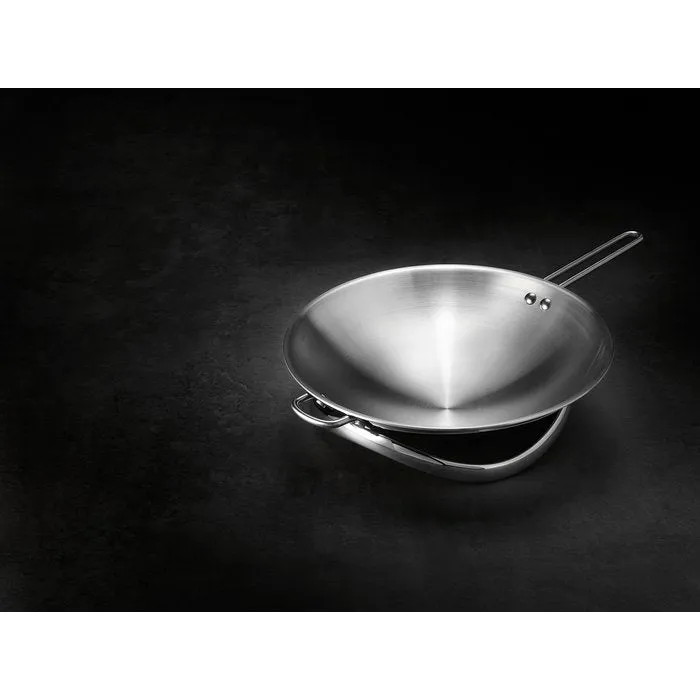 Get fresh flavours and fast cooking with the Fusion Wok. Simmer and stir-fry with all the advantages of wok cooking but with the speed, energy-efficiency and temperature control of modern induction technology.The support ring enables the same ergonomic movements as with a rounded wok and is ideal for serving too.Only for induction hobs. Includes wok pan and support ring. Dimensions: 34cm in diameter.