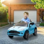 Rev up the fun with the AIYAPLAY 12V Aston Martin DBX licensed ride-on! This stylish electric car offers both remote control for adults and a manual option for kids to steer themselves. With headlights, a horn and music, every ride becomes entertaining. When not in use, simply move it using the handle and auxiliary wheels. Experience thrilling rides, exciting adventure  and create everlasting childhood memories with this fantastic ride-on car.