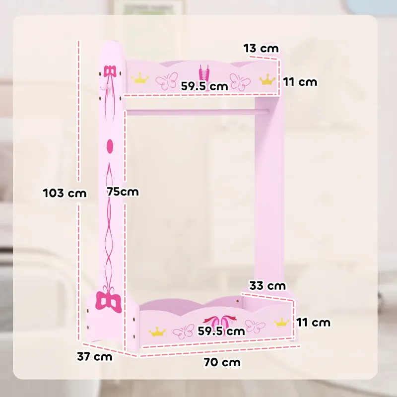 AIYAPLAY Kids Clothes Rail with 2 Storage Shelves for 3-8 Years Old, Pink