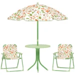 AIYAPLAY Kids Garden Table and Chair Set, Outdoor Patio Set w/ Parasol Green