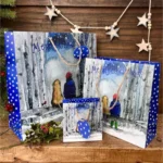 Alex Clark presents the ‘Dog’ Large Gift Bag as part of her Christmas collection. This bag is just perfect when gifting presents to your family and friends this coming festive season, beautifully decorated on both sides of an illustration featuring a delightful dog and its owner sitting in a wintry forest.