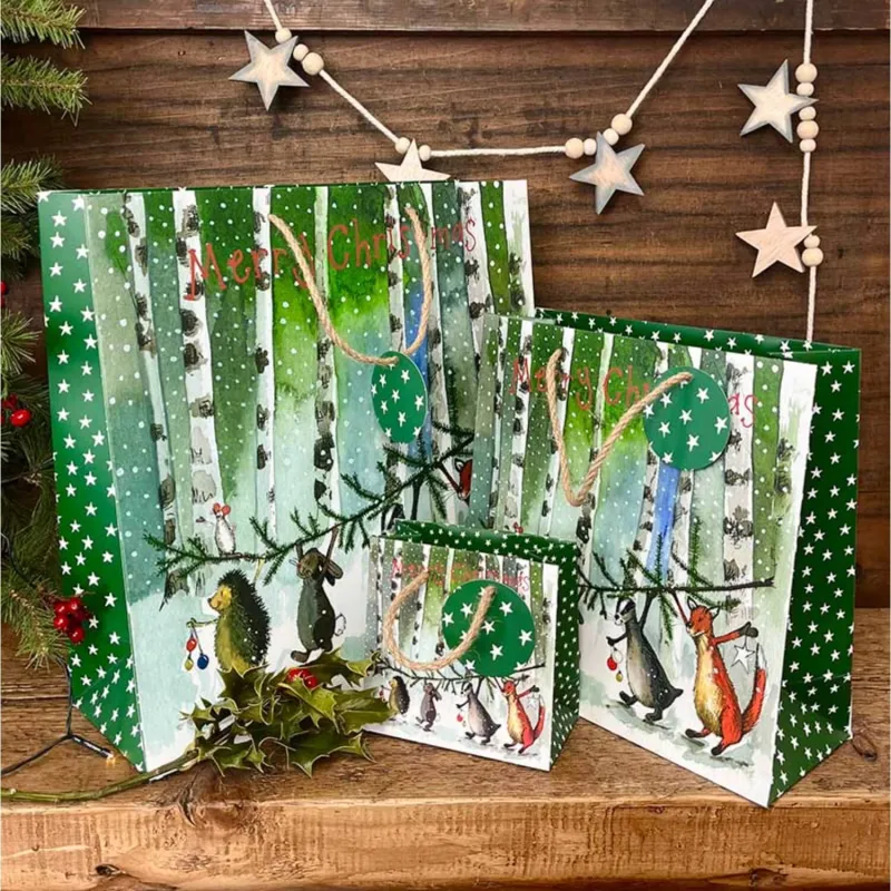 Alex Clark presents the ‘Friends’ Medium Gift Bag as part of her Christmas collection. This bag is just perfect when gifting presents to your family and friends this coming festive season, beautifully decorated on both sides of an illustration featuring delightful woodland animals in a wintry forest.