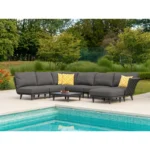 The Alexander Rose Cordial Luxe Corner Patio Furniture Suite with Coffee Table is the perfect way to add a touch of luxury to your outdoor space. This stylish furniture suite is crafted from high-quality materials, including tubular powder coated aluminium frames and marine grade olefin rope. The olefin rope is handwoven around the frames, creating a sturdy and stylish finish. The dark grey colourway is perfect for adding a touch of sophistication to your garden or patio. The coffee table included in this suite is the perfect place to rest drinks or snacks while you enjoy spending time outdoors with family and friends. This furniture suite is perfect for those who want to create a luxurious outdoor space that they can enjoy all year round.